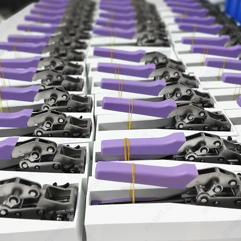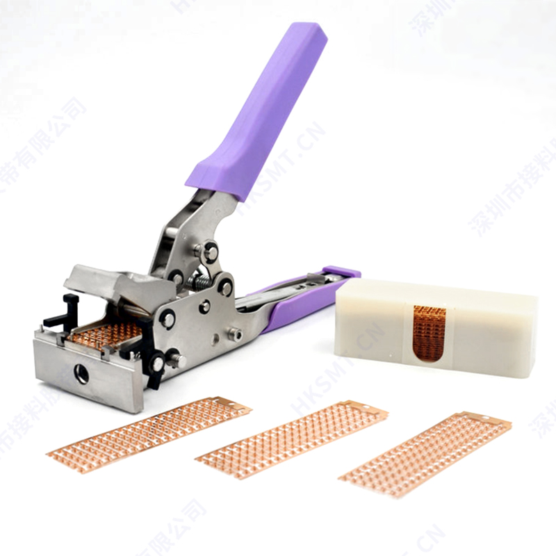 MTL60成排接料鉗用于接8mm-72mm寬的各種料帶,每次使用配合接料銅扣,連片式(單片有20個(gè)銅扣),省去了不用都要放銅扣進(jìn)去的時(shí)間, 接料銅扣的材質(zhì)也與市場上的很多產(chǎn)品不同,銅刺鋒利,可以穿透各種紙帶,膠帶。 產(chǎn)品特點(diǎn)?兩邊安裝了優(yōu)質(zhì)彈簧鋼材質(zhì)的C型扣,緩沖操作過程中各傳動(dòng)環(huán)節(jié)過度的力量。?增加了壓力調(diào)節(jié)裝置,可以針對(duì)不同的料帶的厚薄規(guī)格,根據(jù)需要調(diào)節(jié)接壓銅扣的力度。?手柄開口更加小巧靈活,易手持接料。?MTL60為公司獨(dú)立研發(fā),擁有自主研發(fā)的專利證書,持續(xù)改進(jìn)的新產(chǎn)品.